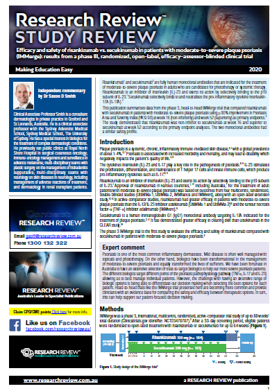 This is a review of the IMMerge trial looking at efficacy and safety of risankizumab vs secukinumab in patients with moderate-to-severe plaque psoriasis.