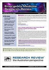 This Review features key medical articles from global Emergency Medicine journals with commentary from Dr George Plunkett and Associate Professor Mark Putland. The Review covers topics such as paediatric emergency medicine, emergency medicine guidelines, wilderness emergency medicine, traumatic injuries, sports injury, head injury, and penetrating trauma.