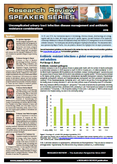 This review is a summary of a recent speaker event held in Melbourne and webcast to Sydney titled ‘Uncomplicated urinary tract infection disease management and antibiotic resistance considerations.’