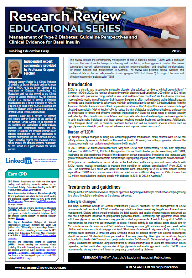This Educational Review outlines the contemporary management of type 2 diabetes mellitus and summarises current epidemiological data, guideline recommendations, and practical considerations for insulin initiation and intensification in Australia.