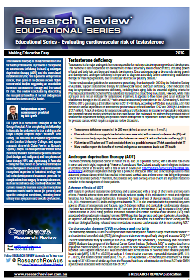 This review covers testosterone deficiency, CV risk of testosterone dosage, benefits of therapy and some of the key studies.