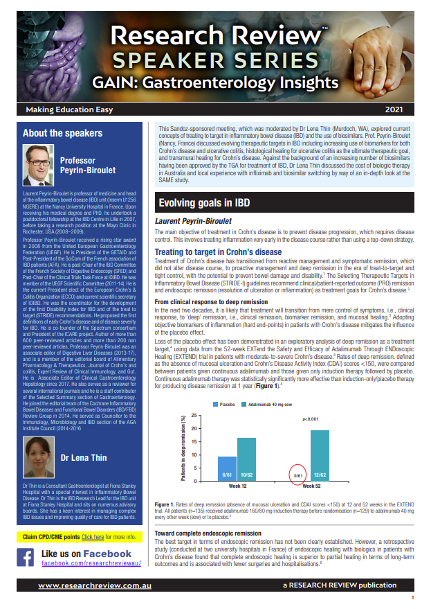 The presentations were given by Professor Peyrin-Biroulet, Professor of Medicine and Head of the IBD unit at Nancy University Hospital in France, and the discussion was moderated by Dr Lena Thin, a Consultant Gastroenterologist at Fiona Stanley Hospital.
