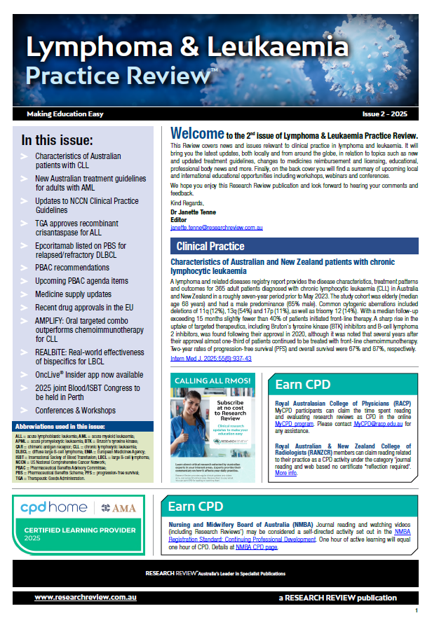 View back issues of Lymphoma & Leukaemia Research Review publications please click