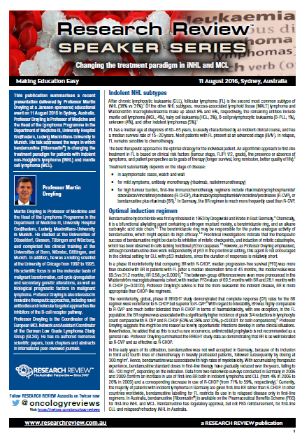 This review is a summary of a recent event in Sydney on changing the treatment paradigm in iNHL and MCL. The presenter was Professor Martin Dreyling, Professor of Medicine and Head of the Lymphoma Programme in the Department of Medicine III, University Hospital Groβhadern, Ludwig Maximilians-University in Munich.