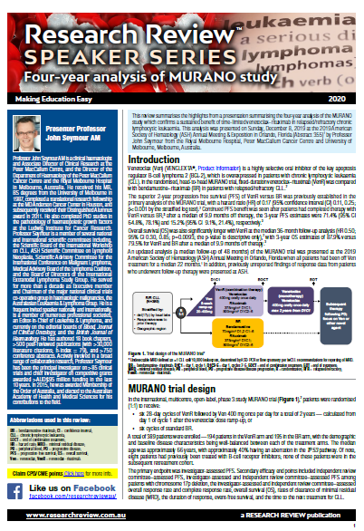 Independent commentary is provided by Professor John Seymour AM, a clinical haematologist and Associate Director of Clinical Research at the Peter MacCallum Centre, and the Director of the Department of Haematology of the Peter MacCallum Cancer Centre & the Royal Melbourne Hospital in Melbourne.
