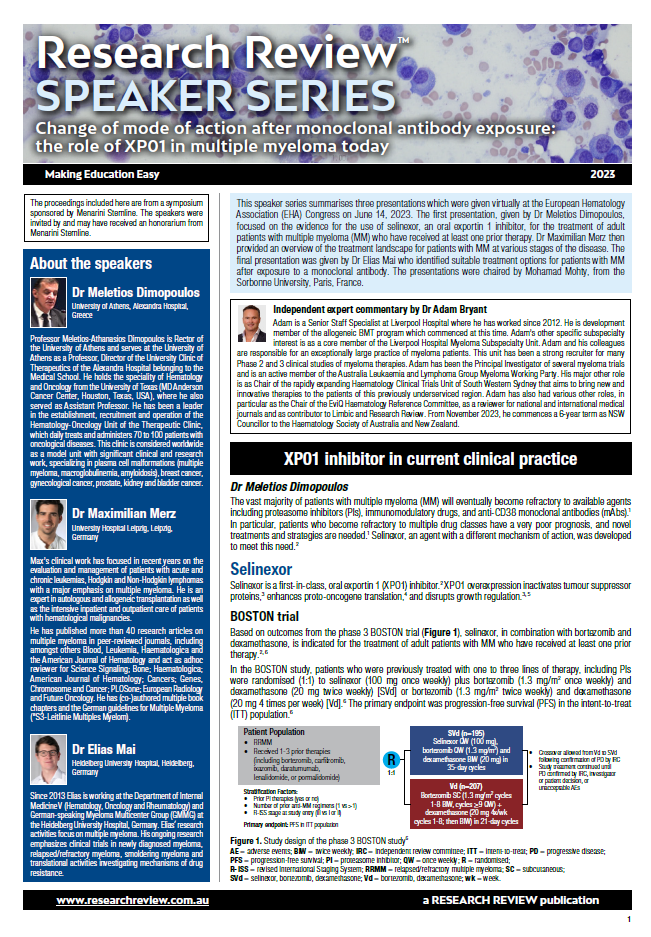 The presentation highlights three presentations which were given virtually at the European Hematology Association Congress in June. The presenters were Dr Meletios Dimopoulos, Dr Maximilian Merz and Dr Elias Mai. Additional commentary is provided by Dr Adam Bryant, Senior Staff Specialist at Liverpool Hospital.