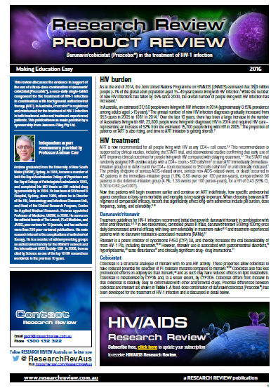 This review discusses HIV burden, available treatments, properties, contraindications and some of the key studies to date. It also provides commentary and recommendations from Professor Andrew Carr, St Vincent’s Hospital, Sydney’s Director of the HIV, Immunology and Infectious Diseases Unit, and Head of the Clinical Research Program, Centre for Applied Medical Research.