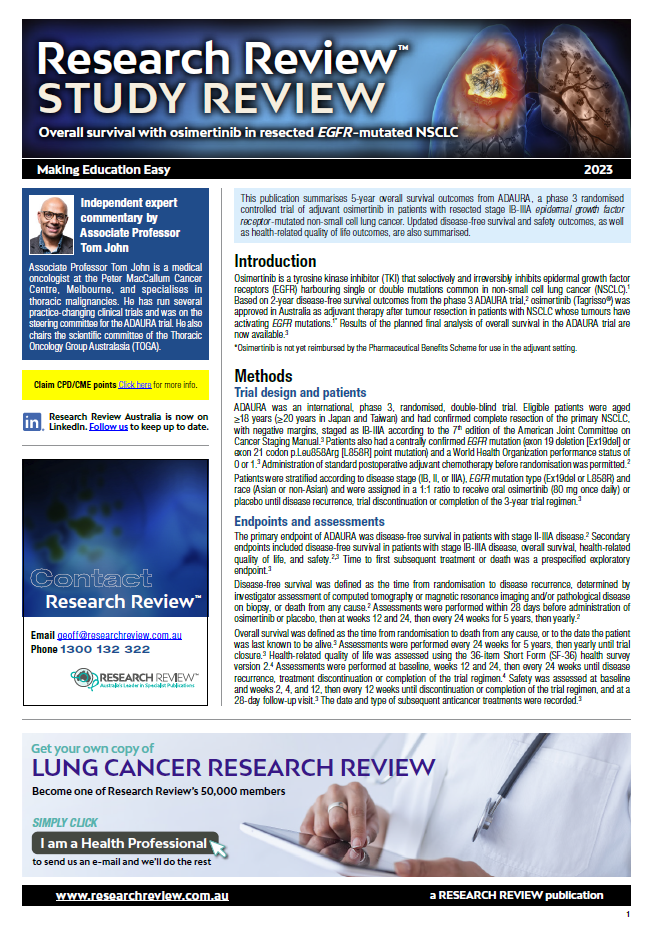 As part of our ongoing aim to bring you reports of innovative developments, we have added a review of the recent ADAURA study which recorded overall survival with osimertinib in resected EGFR -mutated NSCLC.