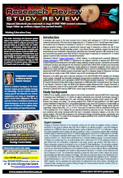 Independent commentary is provided by Dr. Rachel Roberts-Thomson, a Medical Oncologist at The Queen Elizabeth Hospital and with Adelaide Oncology and Haematology.