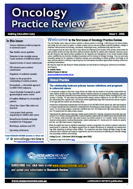 This Review features key medical articles from global oncology journals with commentary from Drs  Alexander Davis, Michael Krasovitsky and Gregory Gaughran. The Review covers topics such as radiation oncology, surgical oncology, medical oncology, diagnosis, staging, screening, chemotherapy and palliative care.
