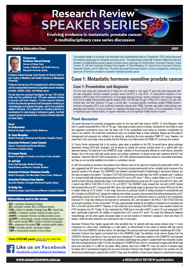 Speaker Series – Evolving evidence in metastatic prostate cancer