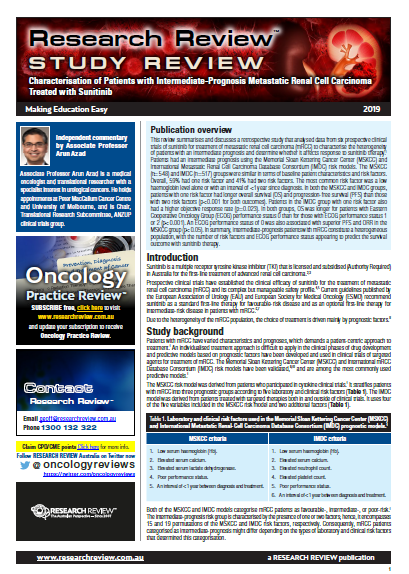 This review is of a recent retrospective study that analysed data from six prospective clinical trials of sunitinib for treatment of metastatic renal cell carcinoma to characterise heterogeneity of patients with an intermediate prognosis and determine whether it affects response.
