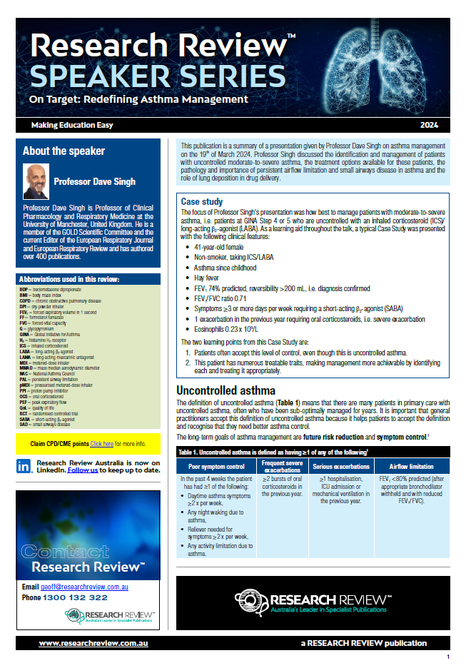 We’re delighted to add a summary of a recent presentation titled: On Target: Redefining Asthma Management with Professor Dave Singh.
