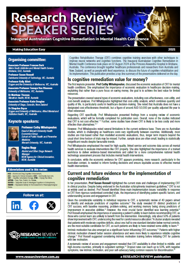 We’re delighted to add a summary of the Inaugural Australasian Cognitive Remediation in Mental Health Conference held at the Princess Alexandra Hospital in Brisbane.