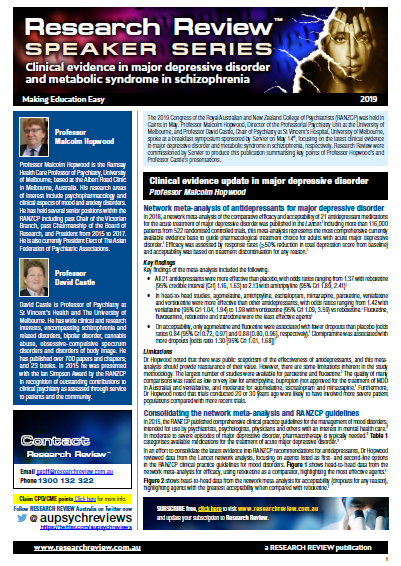 This review is a summary of a recent speaker event held at the 2019 Congress of the RANZCP in Cairns.
