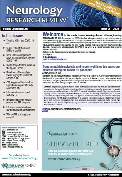 This Review features key medical articles from global neurology journals. The Review covers topics such as neuromuscular diseases, peripheral neurology, neurodegenerative diseases, alzheimer's disease, epileptic drug therapy, migraine prophylaxis, and multiple sclerosis.