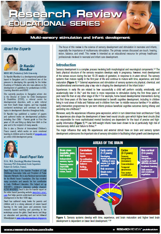 especially the importance of multisensory stimulation. The primary senses discussed are touch, hearing, vision, balance, and smell. This review is intended as an educational resource for primary healthcare professionals involved in neonatal and infant care development.