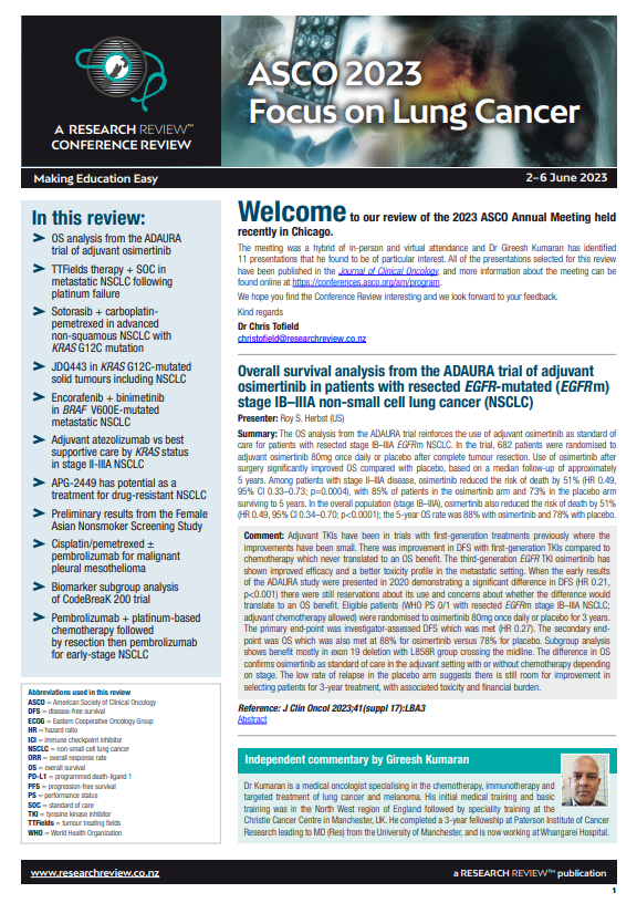 - OS analysis from the ADAURA trial of adjuvant osimertinib