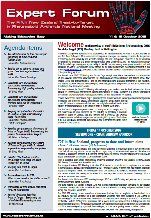 Expert Forum: Fifth NZ Treat-to-Target in Rheumatoid Arthritis National Meeting
