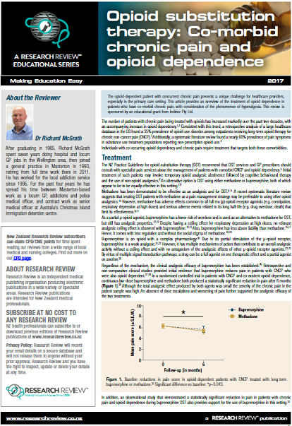 The opioid-dependent patient with concurrent chronic pain presents a unique challenge for healthcare providers, especially in the primary care setting. This article provides an overview of the treatment of opioid dependence in patients who have co-morbid chronic pain, with consideration of the phenomenon of hyperalgesia.